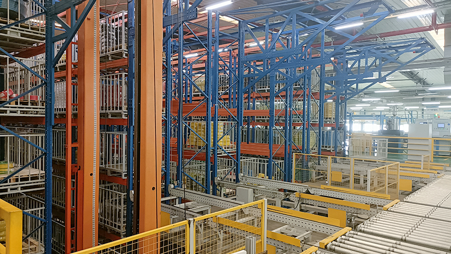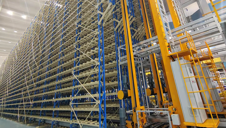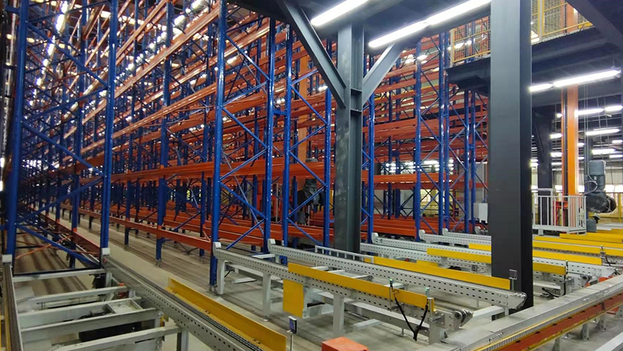 本方案總貨位4352個,高度20m。由6套直式巷道堆垛機系統(tǒng)、立體貨架系統(tǒng)、6套RGV、6套輸送線、6套拆疊盤機、稱重系統(tǒng)、RFID系統(tǒng)、WMS倉庫管理系統(tǒng)和WCS倉儲監(jiān)控系統(tǒng)等組成。提高3倍以上倉儲空間面積,綜合生產(chǎn)成本降低20%以上。