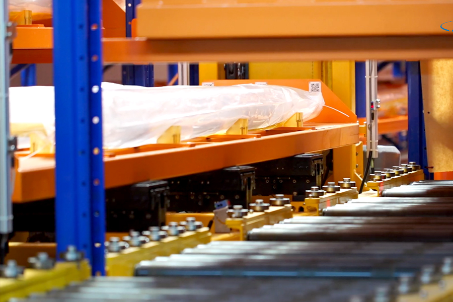 本方案總貨位4326個,高度22m。由3套直式巷道堆垛機系統(tǒng)、立體貨架系統(tǒng)、74套輸送機、1套RGV、WMS和WCS系統(tǒng)。提高4倍以上倉儲空間面積,出入庫效率提升3倍以上,24小時不間斷運行。