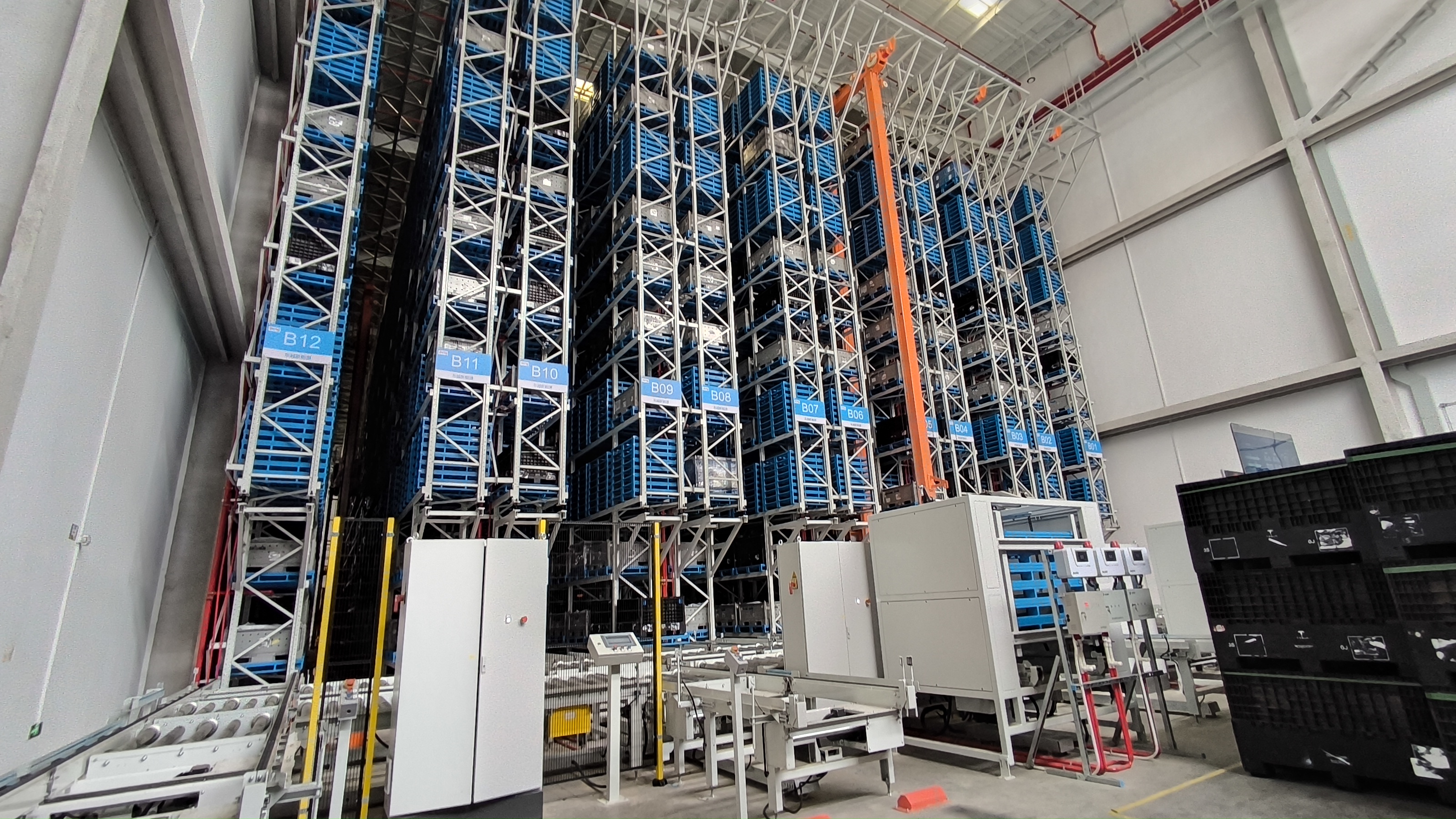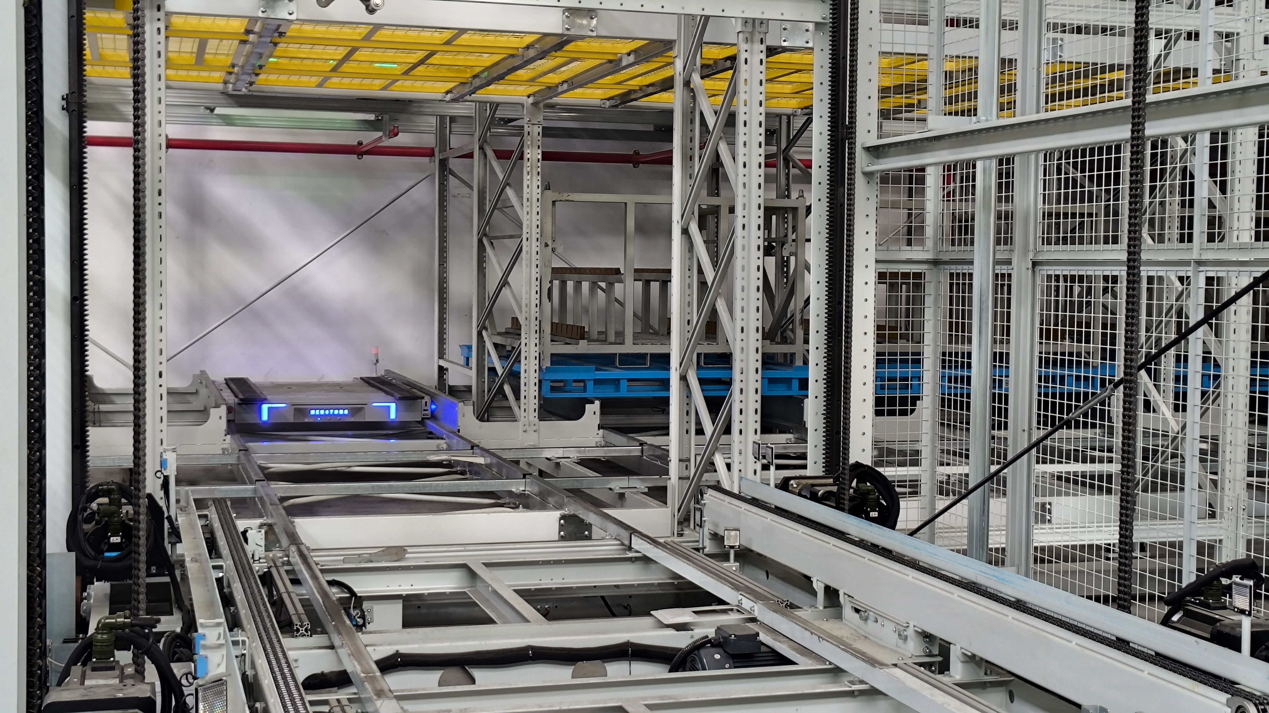 智能柜庫3臺,高度4.5m,托盤54個,單托盤稱重750kg。另配激光指引、恒溫除濕功能。